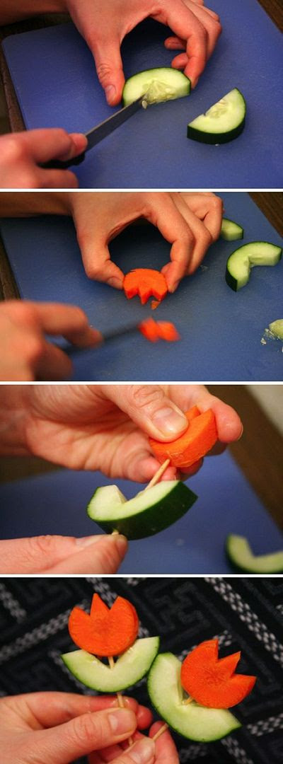 Make your own veggie flowers! Wouldn't these be fab when you are serving dips and veggies? I can see it being a great way to get squeamish kids to eat some veggies, and they would make brilliant garnishes, not to mention being really cute.